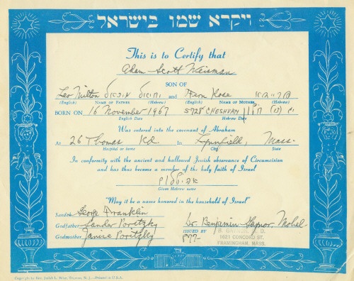 Adam's Brit Milah Certificate